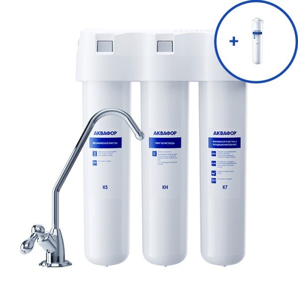 Умягчающий модуль KH эффективен для воды умеренной жесткости. Для показателей выше 5 мг-экв/л рекомендуем водоочиститель обратноосмотического типа Аквафор Кристалл ОСМО или автоматы питьевой воды Аквафор DWM.