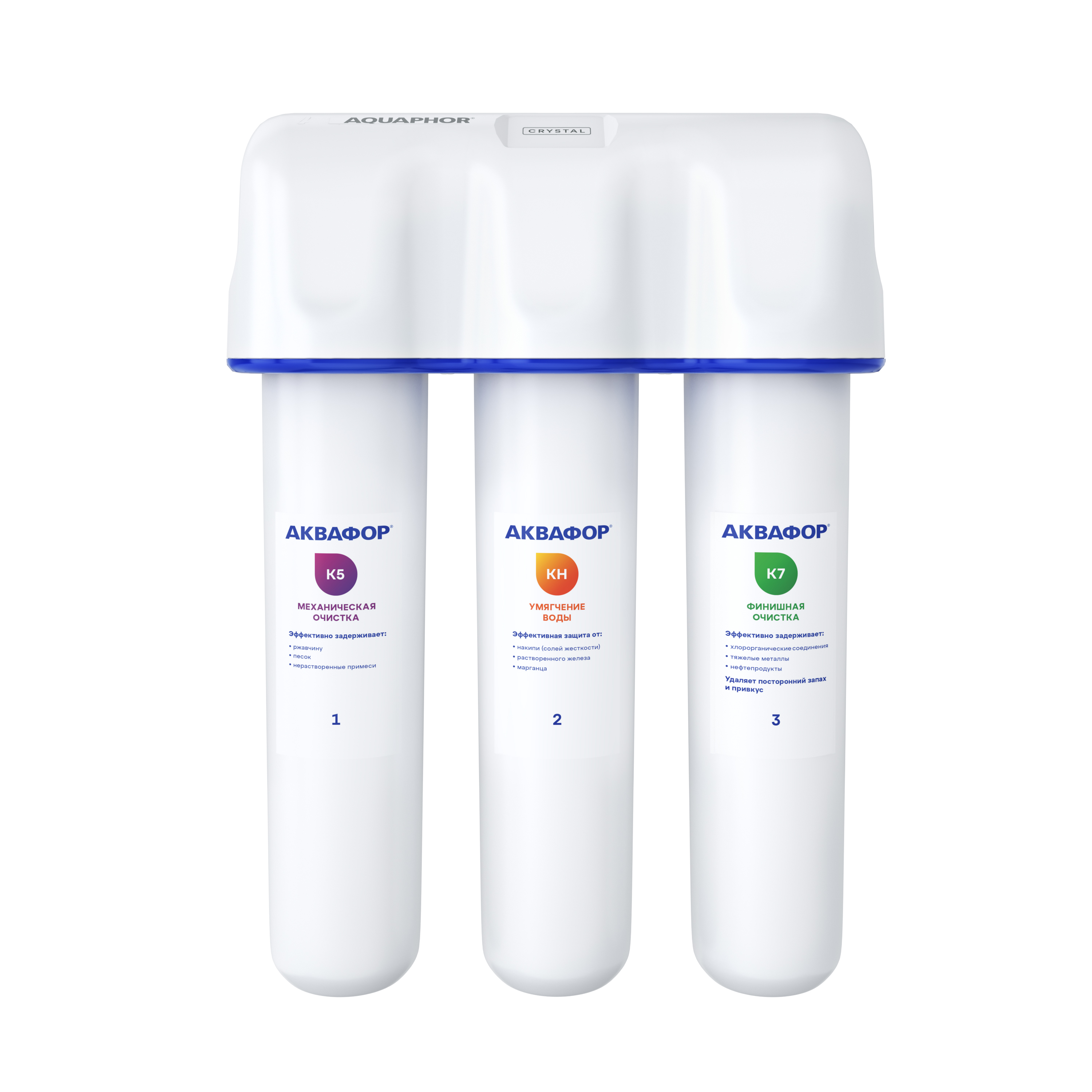 Картриджи последовательно очищают воду и от видимых примесей, и от растворенных. Первый картридж задерживает более крупные частицы, а каждый последующий - более мелкие. Чем больше ступеней - тем лучше фильтр очистит воду: поймает более мелкие видимые частицы ржавчины, песка и ила, успеет захватить из воды максимум растворенных примесей - хлора, нитратов, тяжелых металлов и других.