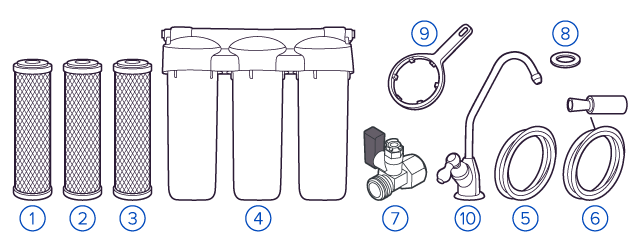 Финальный этап очистки воды: картриджи постфильтрации удаляют самые мелкие механические частицы и кондиционируют воду, придавая ей более приятный вкус.