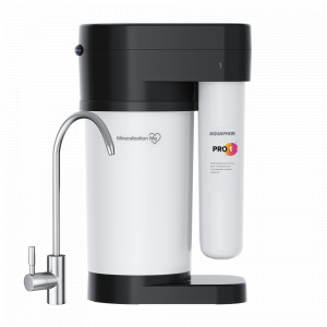 Минерализатор интегрирован в накопительную емкость. Такая конструкция обеспечивает равномерное и стабильное обогащение очищенной воды полезными минералами.