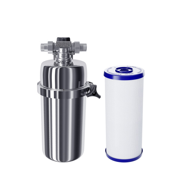 Фильтрует большие объемы воды до стандартов питьевой. Удаляет активный хлор, тяжелые металлы, пестициды, фенолы, нефтепродукты и другие распространенные токсины и аллергены, сохраняя минеральный состав воды.